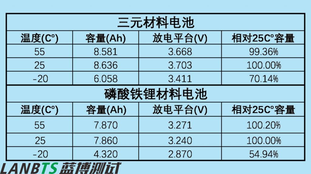 “相對25℃容量”是指不同溫度條件下放電容量與25℃時(shí)放電容量的比值。該數(shù)值能夠準(zhǔn)確反映出電池在不同溫度條件下續(xù)航的衰減,越接近100%,電池表現(xiàn)越好。